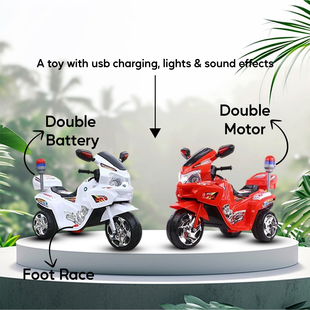 The 5288 police bike model is an impressive vehicle that comes with double battery and double motor capabilities. This bike is perfect for foot races, allowing kids to enjoy speed and power.