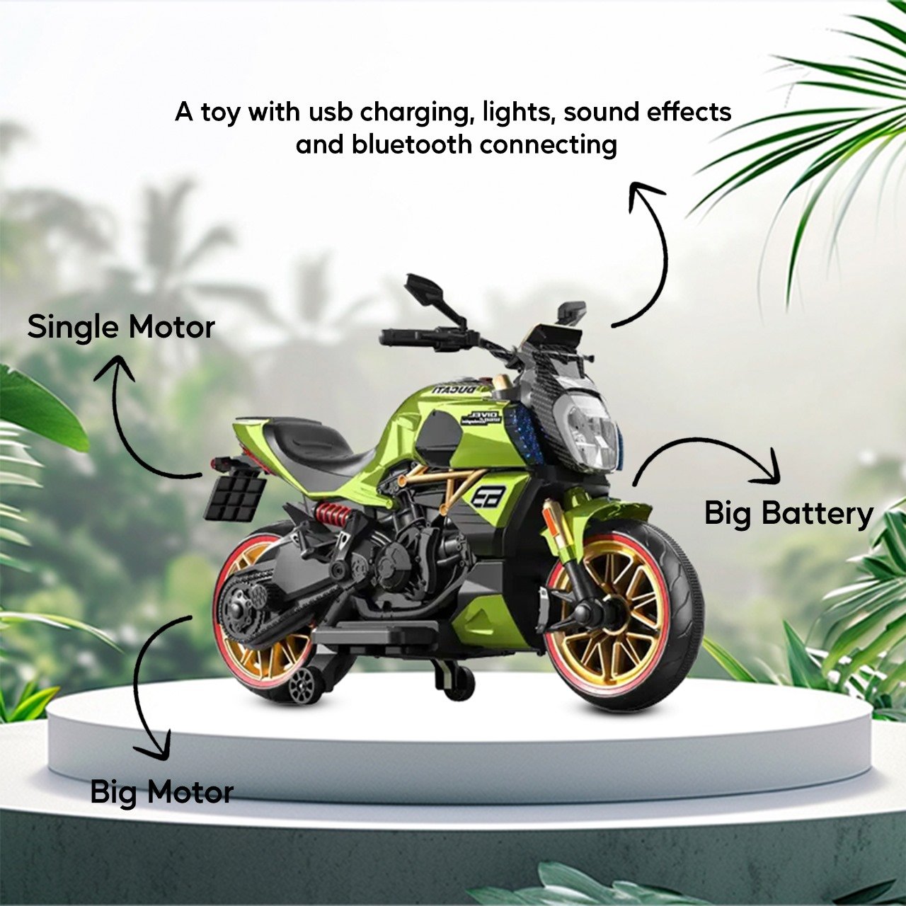 But the fun doesn’t stop there! The Big Boss is loaded with cool features. Connect your phone via Bluetooth to play your favorite tunes as you ride. Need to charge your phone? No problem! The built-in USB port lets you power up your devices on the go. And don’t forget the lights and sound effects – they’ll make sure you stand out from the crowd.